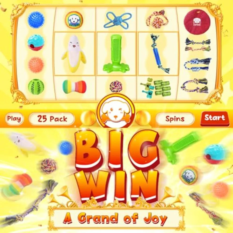 25 Pack Various Puppy Dog Toys for Teething Entertainment Interaction Puppy Chew Toys Pack with Rope Toy Treat Balls and Dog Sq