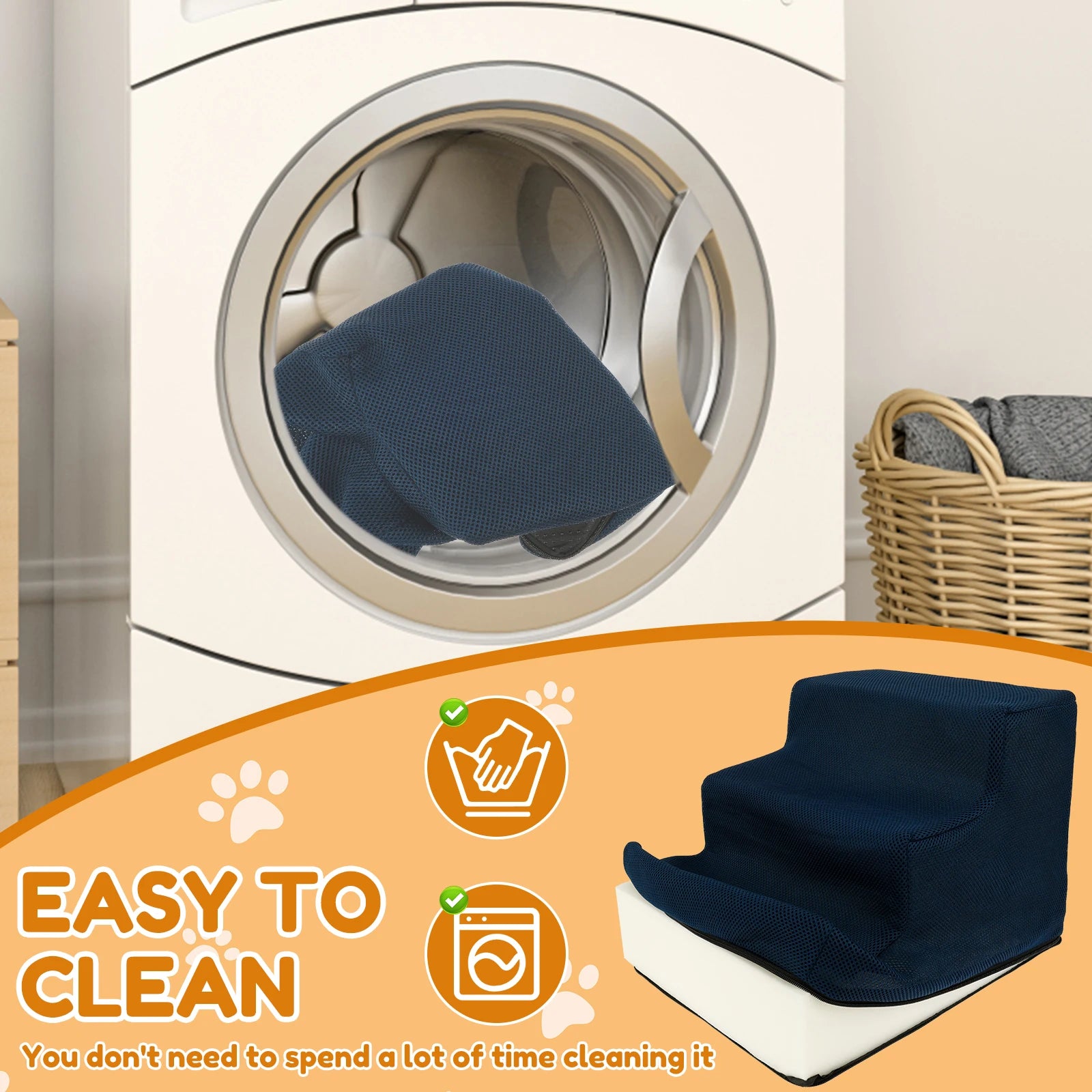 Easy to Clean : The pet stair features a removable , washable cloth cover , hand wash or machine washable , so you can spend less time cleaning