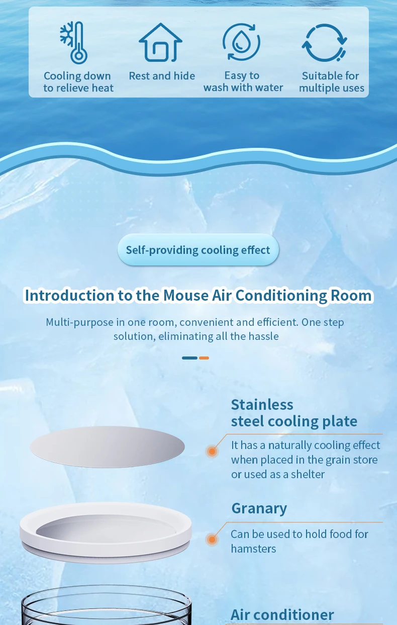 Paired with stainless steel cooling plates, it is more suitable for hamster living (the suitable living temperature for rodents is 20 ° -28 ° C).