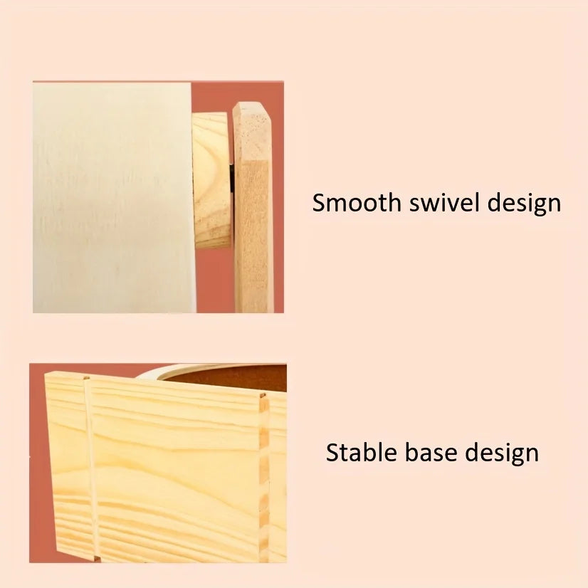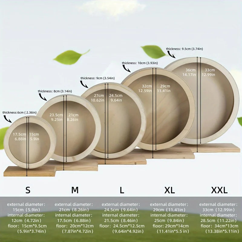 Wooden Silent Hamster Wheel with Stand Natural Wood Exercise Spinner for Chinchillas/Hedgehogs/Ferrets, Anti-Slip Non-Ejection